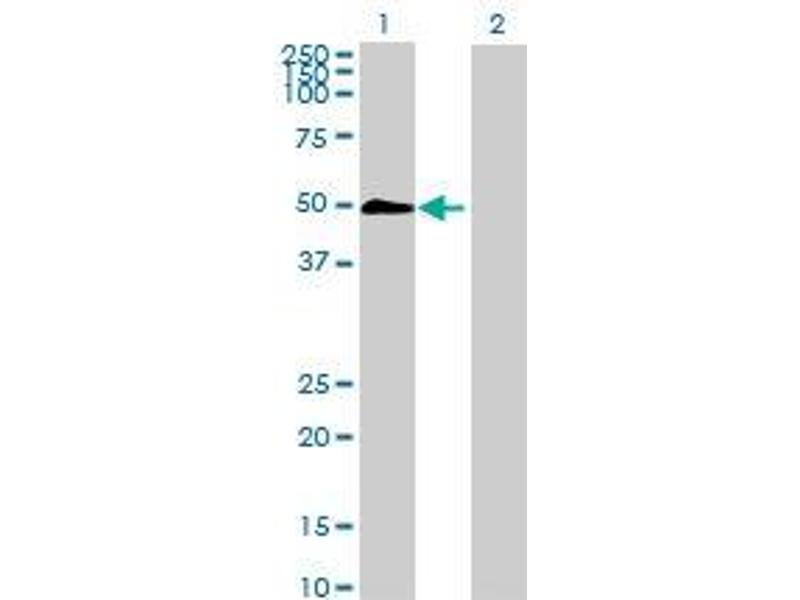 Product Quality tested by: Transient overexpression cell lysate was tested with Anti-CALU antibody by Western Blots.