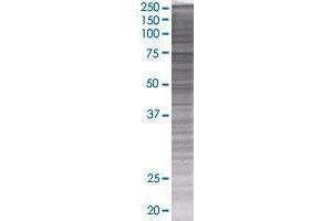 Product Quality tested by: Transient overexpression cell lysate was tested with Anti-DDX3X antibody by Western Blots.