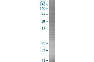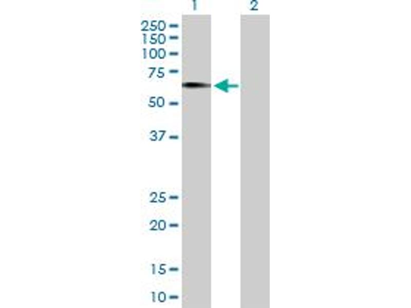 Product Quality tested by: Transient overexpression cell lysate was tested with Anti-EGR2 antibody by Western Blots.