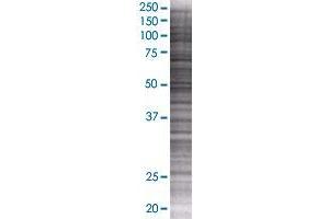 Product Quality tested by: Transient overexpression cell lysate was tested with Anti-ELA1 antibody by Western Blots.