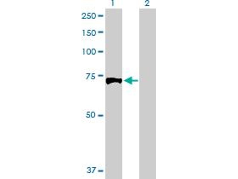 Product Quality tested by: Transient overexpression cell lysate was tested with Anti-EXT1 antibody by Western Blots.