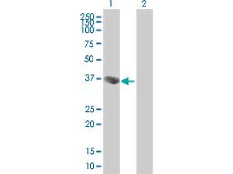 Product Quality tested by: Transient overexpression cell lysate was tested with Anti-ING2 antibody by Western Blots.