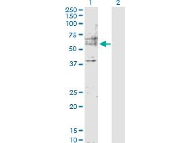 Product Quality tested by: Transient overexpression cell lysate was tested with Anti-MDM2 antibody by Western Blots.