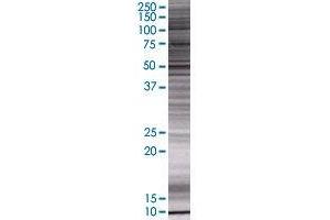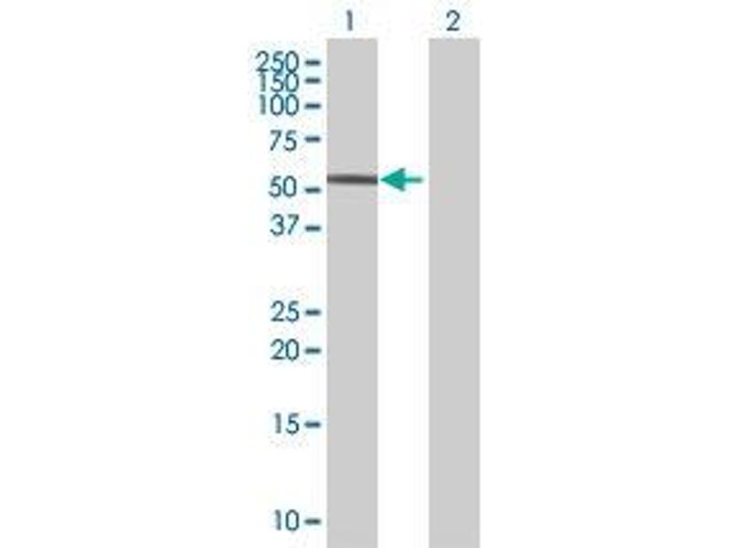 Product Quality tested by: Transient overexpression cell lysate was tested with Anti-MEIS1 antibody by Western Blots.