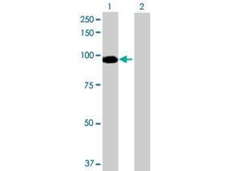 Product Quality tested by: Transient overexpression cell lysate was tested with Anti-NPAS2 antibody by Western Blots.