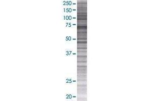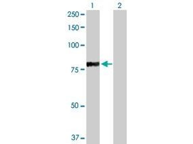 Product Quality tested by: Transient overexpression cell lysate was tested with Anti-RFX5 antibody by Western Blots.