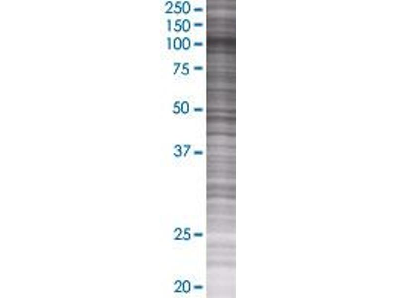 Product Quality tested by: Transient overexpression cell lysate was tested with Anti-BRD2 antibody by Western Blots.