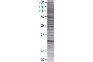 Product Quality tested by: Transient overexpression cell lysate was tested with Anti-TST antibody by Western Blots.