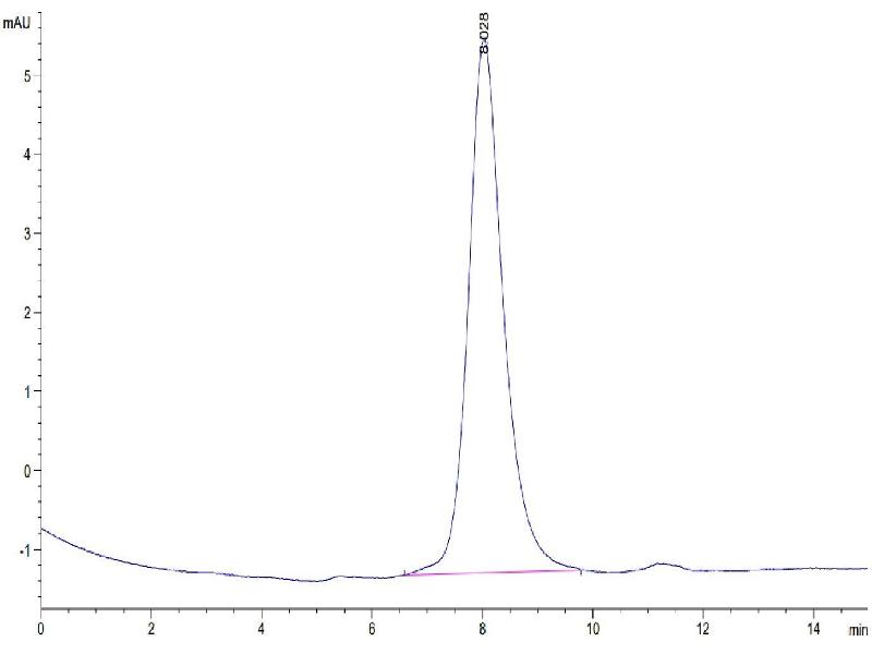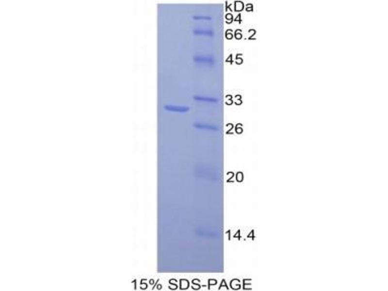 The purity of the protein is greater than 85 % as determined by SDS-PAGE and Coomassie blue staining.