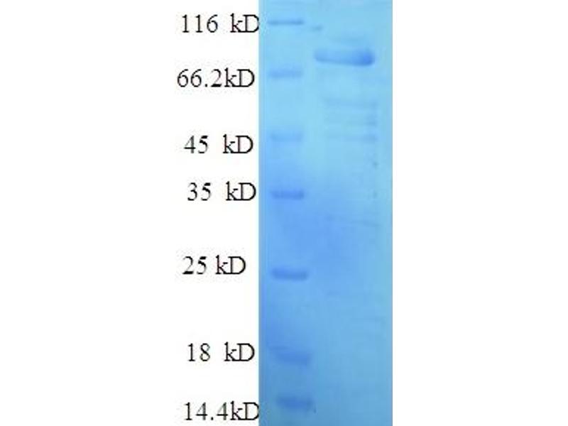 The purity of the protein is greater than 85 % as determined by SDS-PAGE and Coomassie blue staining.