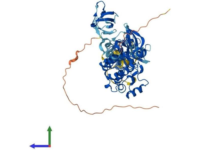 The protein encoded by this gene has amino acid sequence similarity to Csk tyrosine kinase and has the structural features of the CSK subfamily: SRC homology SH2 and SH3 domains, a catalytic domain, a unique N terminus, lack of myristylation signals, lack of a negative regulatory phosphorylation site, and lack of an autophosphorylation site. This protein is thought to play a significant role in the signal transduction of hematopoietic cells. It is able to phosphorylate and inactivate Src family kinases, and may play an inhibitory role in the control of T-cell proliferation. This protein might be involved in signaling in some cases of breast cancer. Three alternatively spliced transcript variants that encode different isoforms have been described for this gene. [provided by RefSeq, Jul 2008].