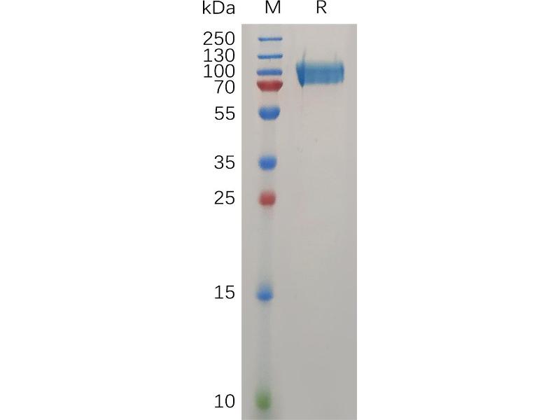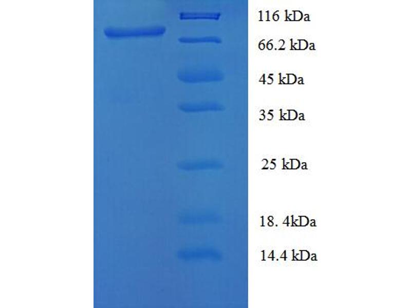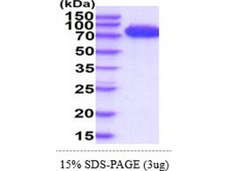 The purity of the protein is greater than 85 % as determined by SDS-PAGE and Coomassie blue staining.