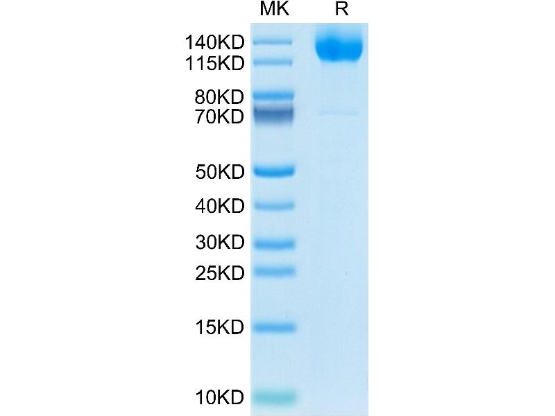 The purity of the protein is greater than 95 % as determined by SDS-PAGE and Coomassie blue staining.