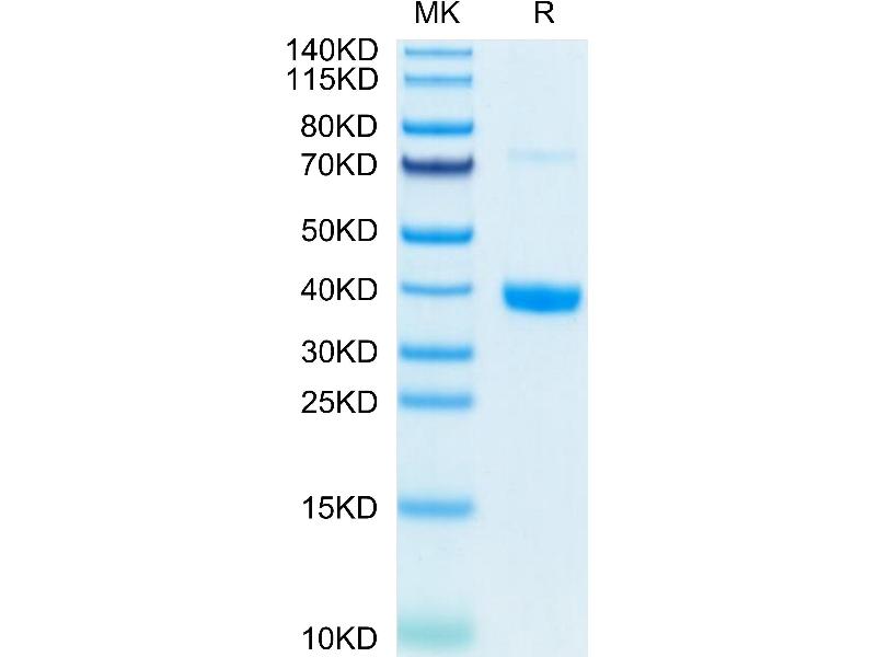 The purity of the protein is greater than 85 % as determined by SDS-PAGE and Coomassie blue staining.