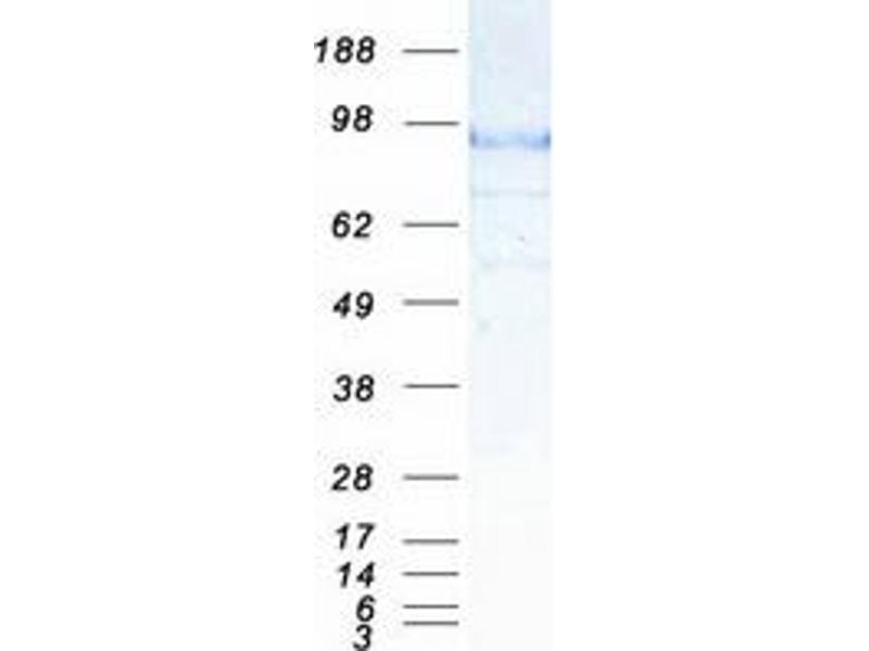 The purity of the protein is greater than 85 % as determined by SDS-PAGE and Coomassie blue staining.