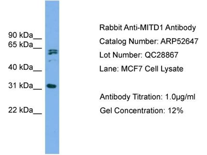 MIT, microtubule interacting and transport, domain containing 1 (mitd1) Antibodiesmicrotubule interacting and trafficking domain containing 1 (MITD1) Antibodies
