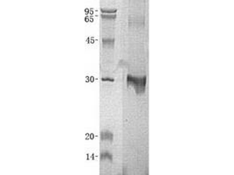 > 90 % as determined by Bis-Tris PAGE, anti-tag ELISA, Western Blot and analytical SEC (HPLC)