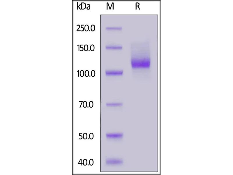 The purity of the protein is greater than 85 % as determined by SDS-PAGE and Coomassie blue staining.