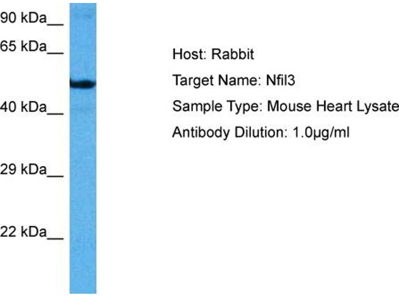 : "Molecular cloning and characterization of NF-IL3A, a transcriptional activator of the human interleukin-3 promoter." in: Molecular and cellular biology, Vol. 15, Issue 11, pp. 6055-63, (1995) (PubMed).Aliases for NFIL3 Antibodies