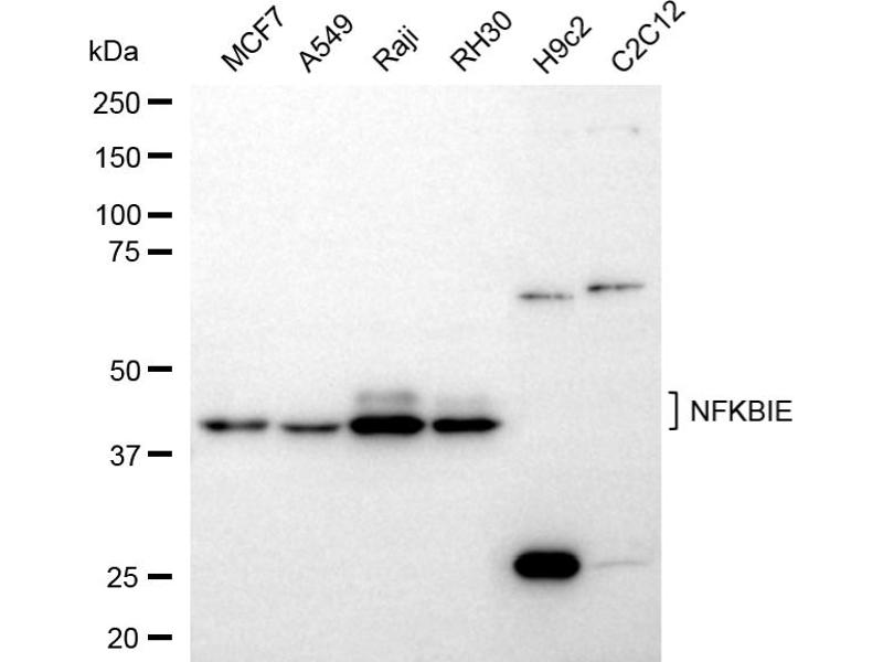 NFKBIE Reactivity: Human, Mouse, Rat, Cow WB Host: Rabbit Polyclonal unconjugated