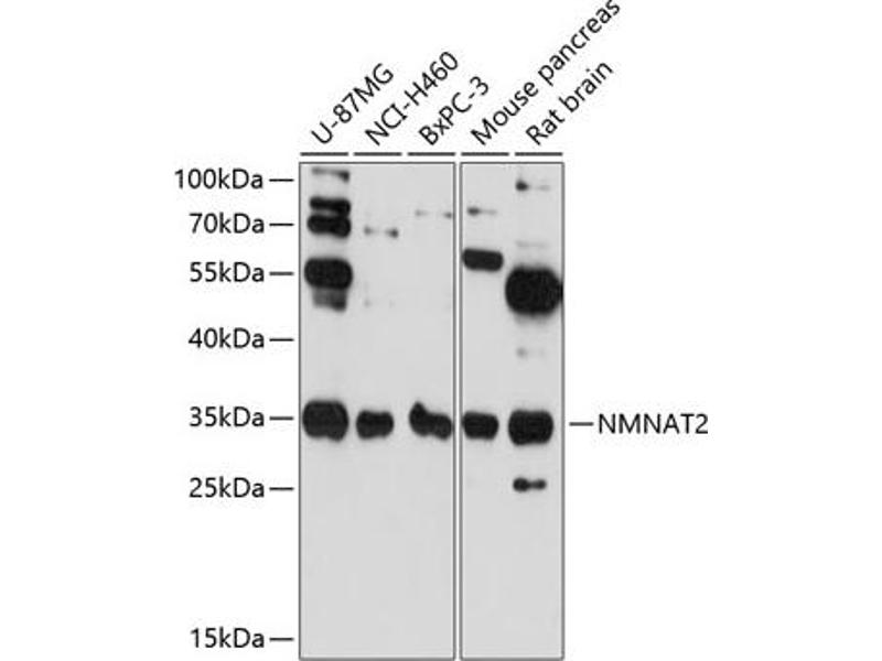 : "Nmnat2 delays axon degeneration in superior cervical ganglia dependent on its NAD synthesis activity." in: Neurochemistry international, Vol. 56, Issue 1, pp. 101-6, (2010) (PubMed).Aliases for NMNAT2 Antibodies