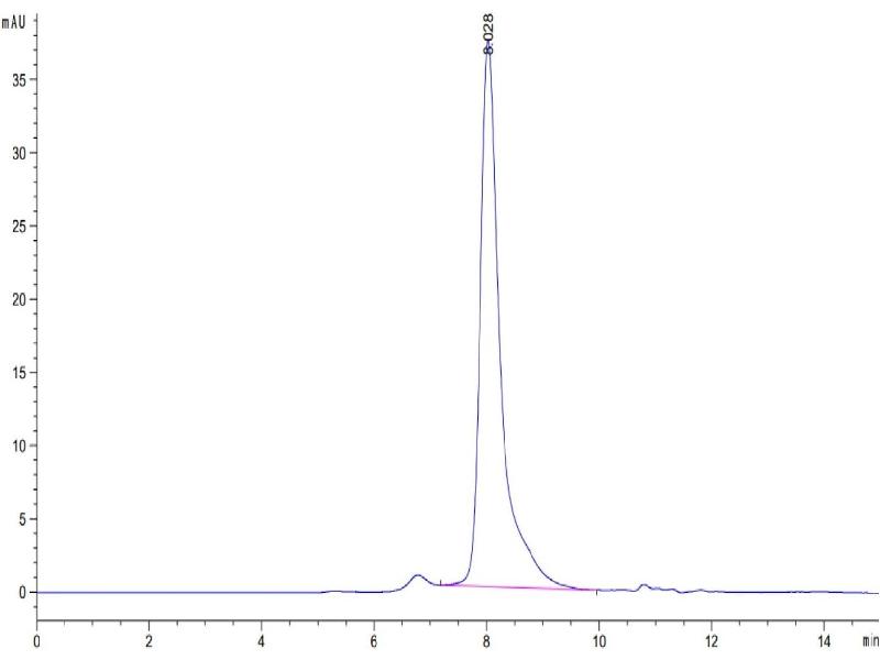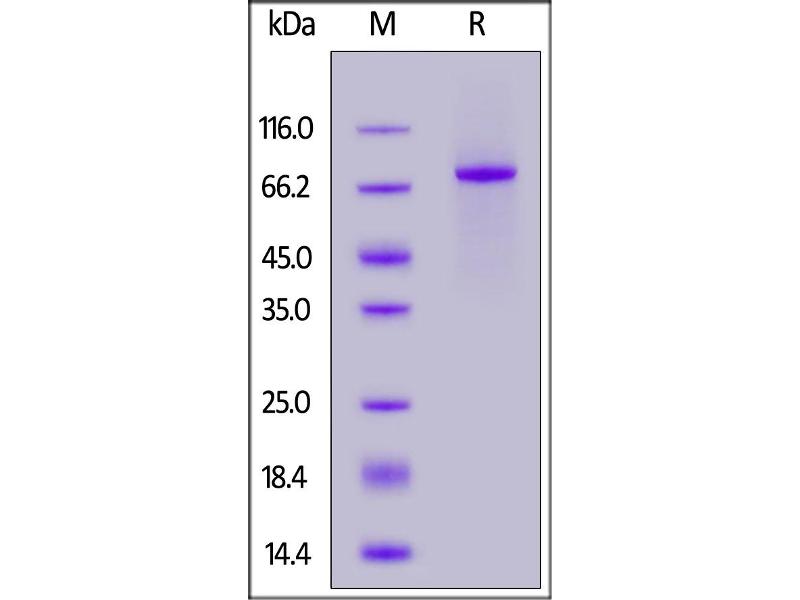 The purity of the protein is greater than 95 % as determined by SDS-PAGE and Coomassie blue staining.