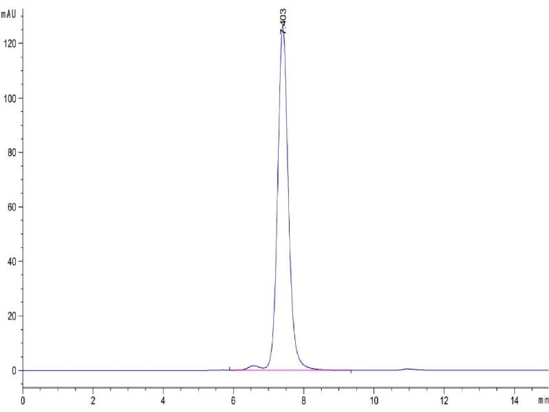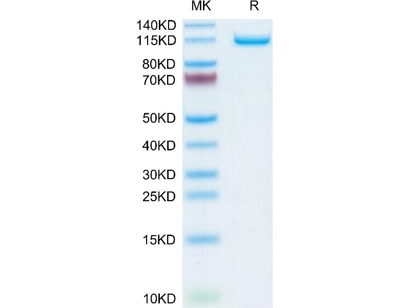 The purity of the protein is greater than 85 % as determined by SDS-PAGE and Coomassie blue staining.