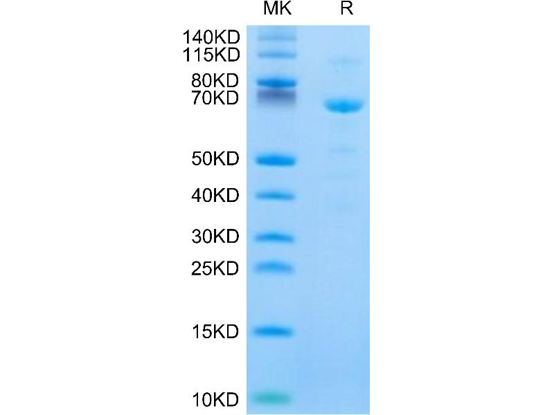 The purity of the protein is greater than 85 % as determined by SDS-PAGE and Coomassie blue staining.