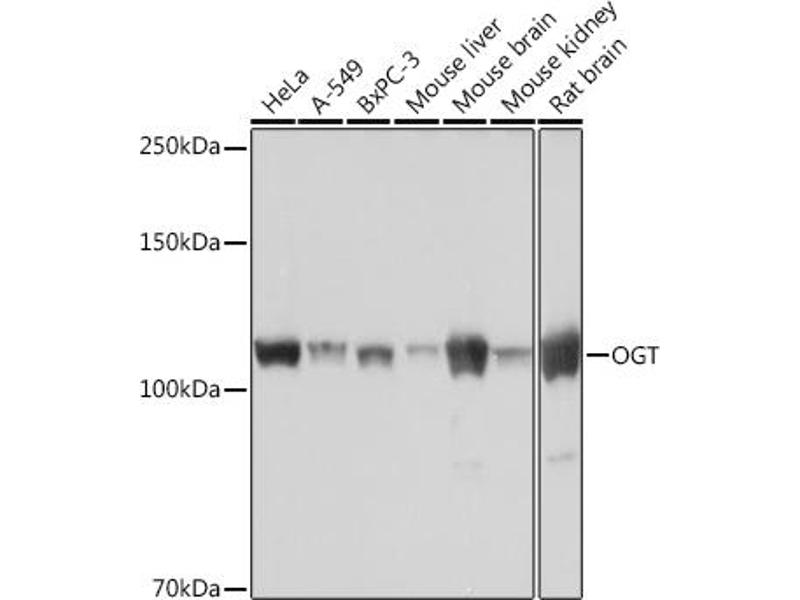 OGT Reactivity: Human, Mouse, Rat, Dog, Cow, Horse, Rabbit, Guinea Pig, Zebrafish (Danio rerio) WB, IHC Host: Rabbit Polyclonal unconjugated