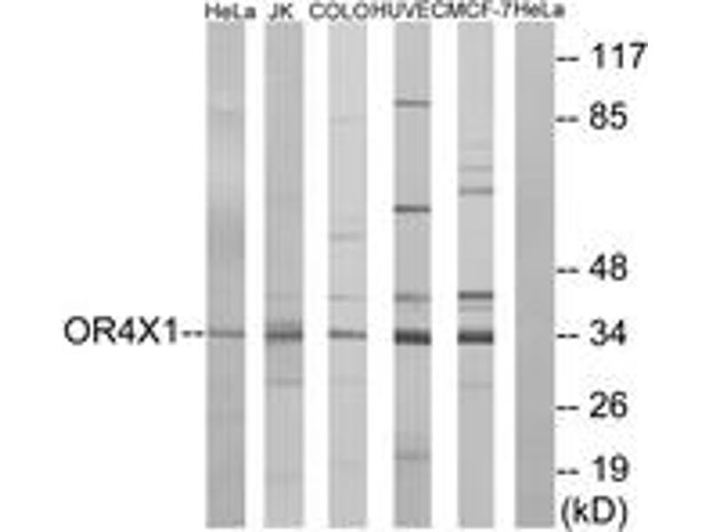 olfactory receptor family 4 subfamily X member 1 (gene/pseudogene) (OR4X1) Antibodiesolfactory receptor, family 4, subfamily X, member 1 (OR4X1) Antibodies