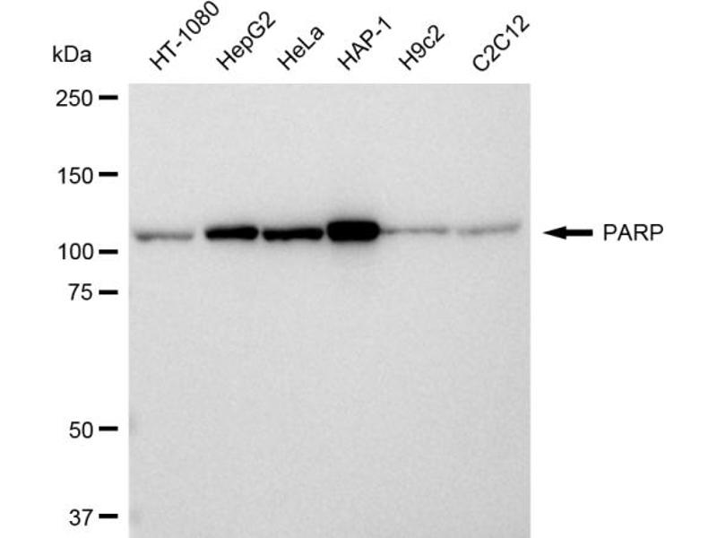 PARP1 Reactivity: Human WB, ELISA, ICC, IHC (p), IF (p), IF (cc), IHC (fro) Host: Rabbit Polyclonal unconjugated