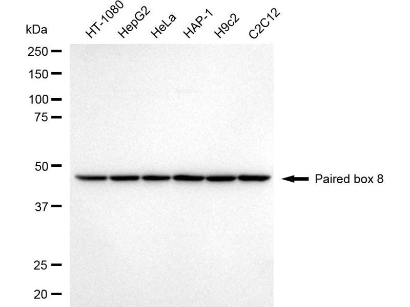 : "PAX8 regulon in human ovarian cancer links lineage dependency with epigenetic vulnerability to HDAC inhibitors." in: eLife, Vol. 8, (2020) (PubMed).: "PTEN-knockdown disrupts the morphology, growth pattern and function of Nthy-Ori 3-1 cells by downregulating PAX8 expression." in: Oncology letters, Vol. 18, Issue 6, pp. 6732-6740, (2019) (PubMed).