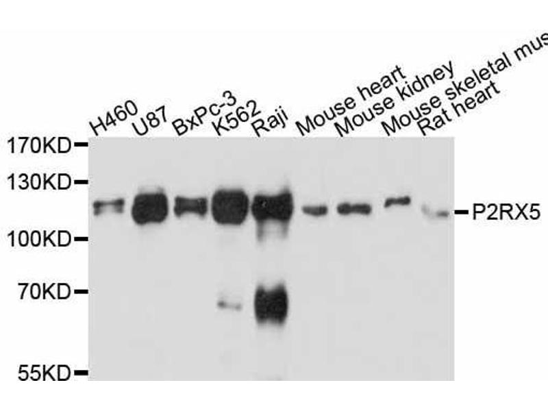 Explore reliable P2RX5 antibodies from a broad selection of renowned manufacturers. Our portfolio enables accurate P2RX5 detection across multiple species, including Human, Rat, Mouse, Cow, Dog, Rabbit, Guinea Pig, and supports diverse research applications such as WB, ELISA, IHC, FACS, IF.