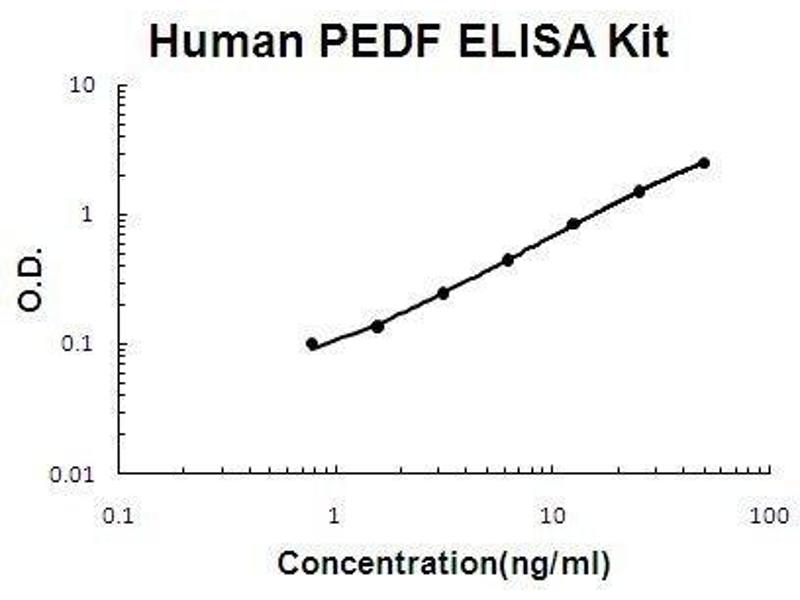 SERPINF1 Reactivity: Human AA 1-418 Colorimetric Sandwich ELISA 0.78-50 ng/mL Cell Culture Supernatant, Plasma (EDTA), Plasma (heparin), Serum