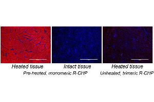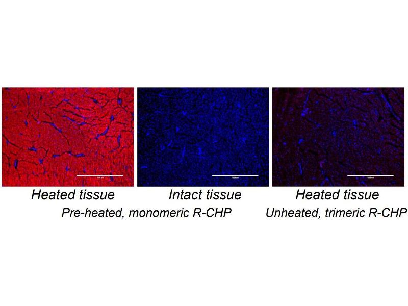 CHP is a powerful histopathology tool which enables straightforward detection of inflammation and tissue damage caused by a large variety of diseases, as well as tissue remodeling during development and aging. CHP robustly visualizes the pericellular matrix turnover caused by proteolytic migration of cancer cells within 3D collagen culture, without the use of synthetic fluorogenic matrices or genetically modified cells. CHP can measure and localize mechanical injury to collagenous tissue at the molecular level. It also enables assessment of collagen denaturation in decellularized extracellular matrix. In addition, CHP can be used to specifically visualize collagen bands in SDS-PAGE gels without the need for western blot.