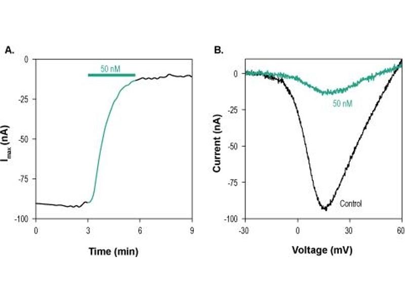 - SNX-230,ω-Conotoxin MVIIC blocks CaV2.1 (α1A, P/Q-type) and CaV2.2 (α1B, N-type) channels.1 The toxin binds with high affinity to CaV2.1 and with lower affinity to CaV2.2 in rabbit brain.2 However, the block by ω-Conotoxin-MVIIC of N-type channels in DRG neurons developed much faster than the block of P-type currents in Purkinje cells.1 The effect of the toxin is modulated by voltage (i.e. it is more potent for inactivated channels).3In addition this toxin was reported to block nicotinic receptors (transiently expressed in Xenopus oocytes) with IC50 of 1.3 μM4 It was also shown to inhibit K+-induced 3H-GABA release in hippocampus in vivo.5 This effect was with high affinity (50 % block, 200 nM). The toxin was used to inhibit synaptic transmission in several peripheral preparations.6,7