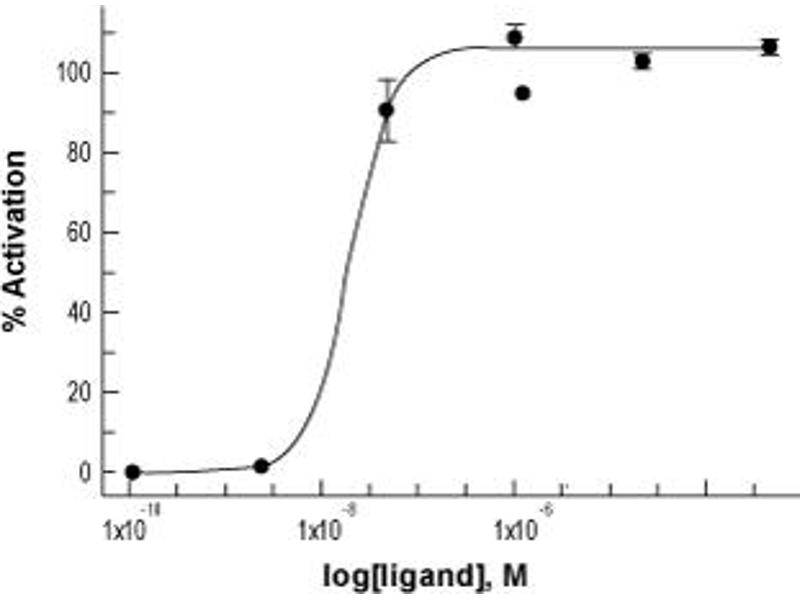 - Centrifuge the vial (10,000 x g for 5 minutes) before adding solvent to spin down all the powder to the bottom of the vial. The lyophilized product may be difficult to visualize. Add solvent directly to the centrifuged vial. Gently tap, tilt, and roll the vial to aid dissolution. Avoid vigorous vortexing, light vortexing for up to 3 seconds is acceptable if needed. The product is soluble in pure water at high micromolar concentrations (100 μM - 1 mM). For long-term storage in solution, we recommend preparing a stock solution by dissolving the product in double-distilled water (ddH2O) at a concentration between 100-1000x of the final working concentration. Divide the stock solution into small aliquots and store at -20 °C. Before use, thaw the relevant vial(s) and dilute to the desired working concentration in your working buffer. Centrifuge all product preparations before use. It is recommended to prepare fresh solutions in working buffers just before use. Avoid multiple freeze-thaw cycles to maintain biological activity.