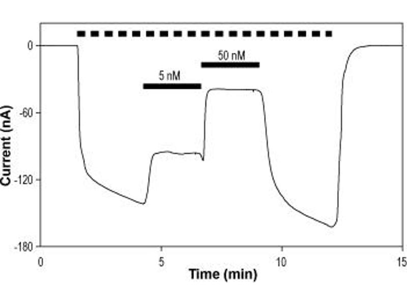 - TPN-Q,Tertiapin, the native toxin, was originally isolated from European honey bee Apis mellifera venoM Native and synthetic Tertiapin blocks a range of inward rectifier K+ channels (Kir), in particular ROMK1 (Kir1.1, IC50 = 2 nM) and GIRK (Kir3 family, IC50 for the Kir3.1/3.4 heteromer was 8.6 nM) but with no effect on the Kir2 family member1. In accordance, it was shown to inhibit acetylcholine induced K+ currents in mammalian cardiomyocytes2,3.Tertiapin-Q is a derivative of Tertiapin in which Met13 is substituted by a Gln residue. However, unlike native Tertiapin, Tertiapin-Q is non-oxidizable and therefore is more stable4.Tertiapin-Q inhibits the above-mentioned channels with similar affinities and also inhibits Ca2-activated large conductance BK-type K+ channels in a concentration and voltage-dependent manner5.