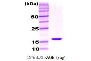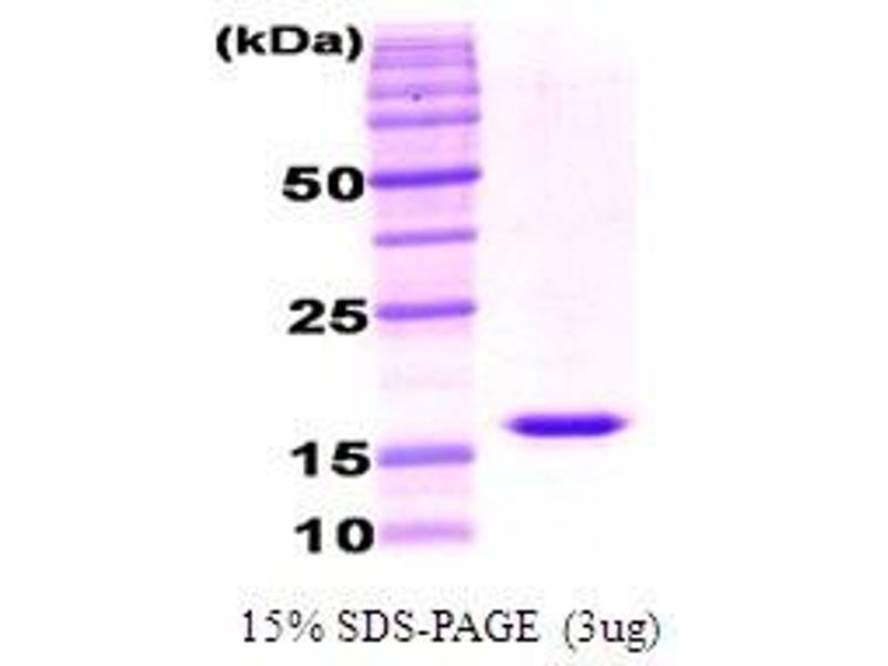 Adiponectin/Acrp30 (247 amino acids) is adipocyte complement-related protein of 30kDa and exclusively expressed in differentiated adipocytes. Adiponectin (Acrp30) is a member of the complement factor C1q family and consists of signal sequence, non-homologous sequence, collagen domain and globular domain (gAcrp30). Adiponectin (Acrp30) expression is reduced in a variety of obese and insulin-resistant states in human, monkeys and mice. Injection of Acrp30 (247 amino acids) or gAcrp30 (globular domain) lowers serum glucose and free fatty acid level in mice. The globular domain of adiponectin/acrp30 (amino acid residues, 111-247, gAcrp30) was overexpressed in E. coli and purified by using conventional chromatography techniques.
