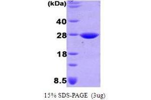 Dsb proteins control the formation and rearrangement of disulfide bonds during the folding of secreted and membrane proteins in bacteria. DsbG, a member of this family, has disulfide bond isomerase and chaperone activity. So DsbG was shown to interact with refolding intermediates of chemically denatured citrate synthase and prevents their aggregation in vitro. In addition to sharing sequence homology with the thiol disulfide exchange protein DsbC, DsbG likewise was shown to form a stable periplasmic dimer and it displays an equilibrium constant with glutathione comparable with DsbA and DsbC. DsbG was found to be expressed at approximately 25 % the level of DsbC. Recombinant DsbG was expressed in E. coli and purified by conventional chromatography techniques.