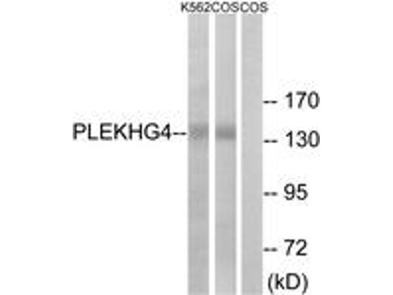 pleckstrin homology and RhoGEF domain containing G4 (PLEKHG4) Antibodiespleckstrin homology domain containing, family G (with RhoGef domain) member 4 (Plekhg4) Antibodies
