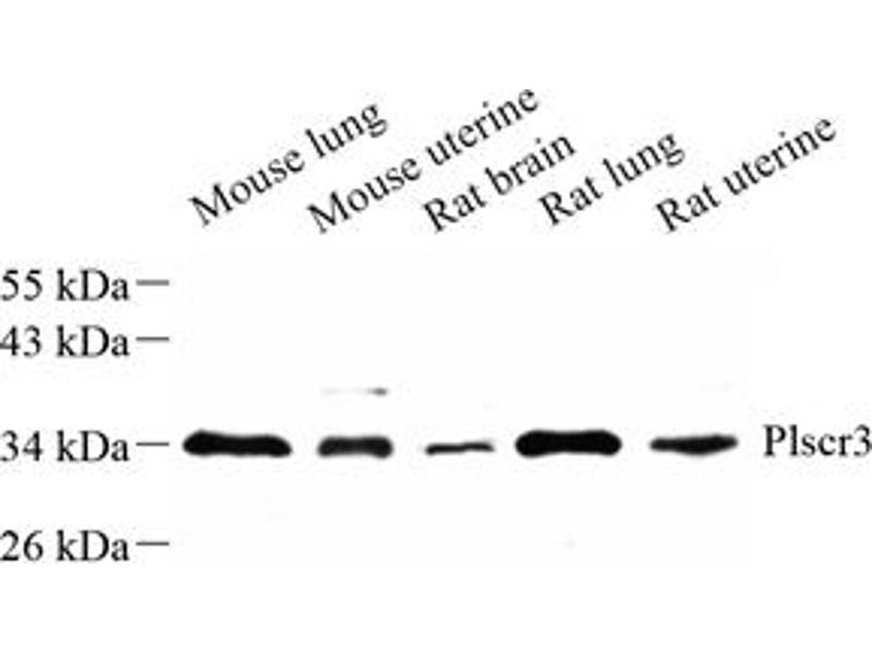 phospholipid scramblase 3 (PLSCR3) Antibodiesphospholipid scramblase 3 (Plscr3) Antibodies