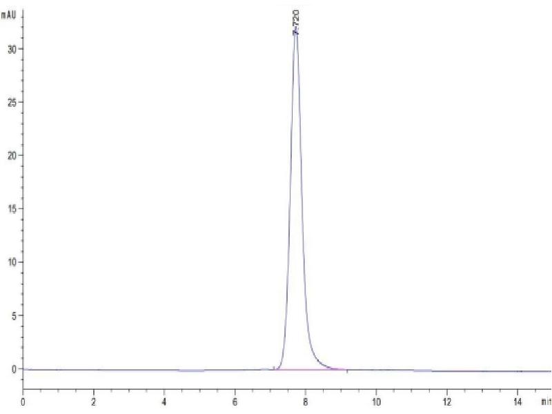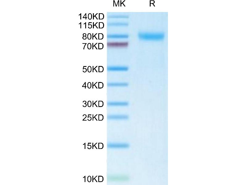 The purity of the protein is greater than 85 % as determined by SDS-PAGE and Coomassie blue staining.