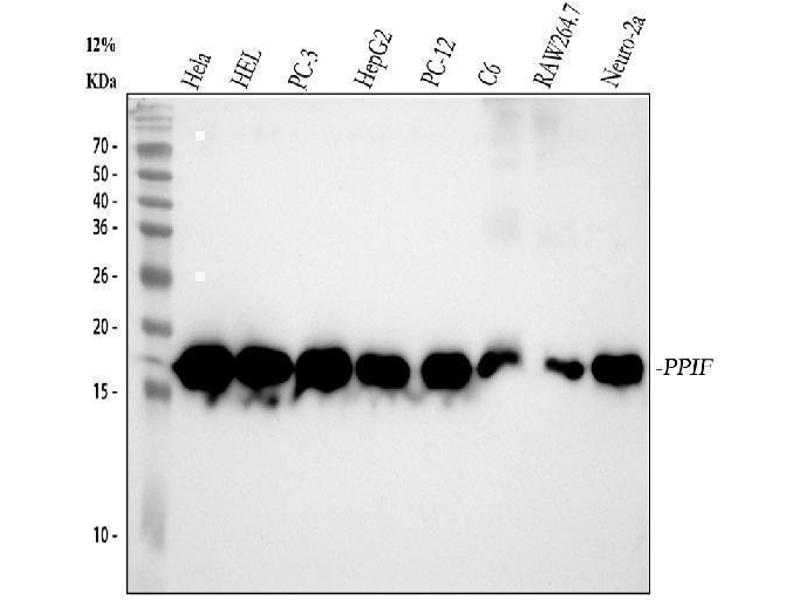 PPIF Reactivity: Human, Rat, Mouse, Rabbit, Dog, Cow, Guinea Pig, Horse, Saccharomyces cerevisiae, Sheep, Zebrafish (Danio rerio) WB Host: Rabbit Polyclonal unconjugated