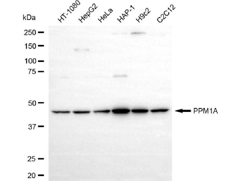 PPM1A Reactivity: Human, Mouse, Rat, Cow, Rabbit, Dog, Guinea Pig, Horse, Chicken, Pig, Bat, Hamster, Xenopus laevis WB Host: Rabbit Polyclonal unconjugated
