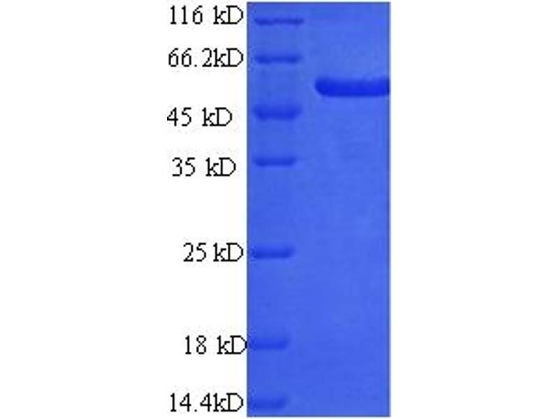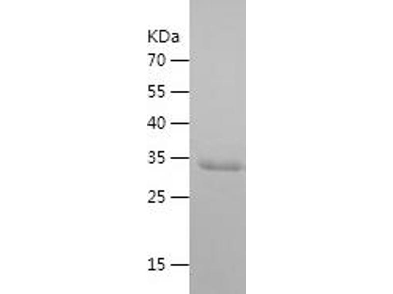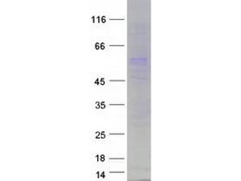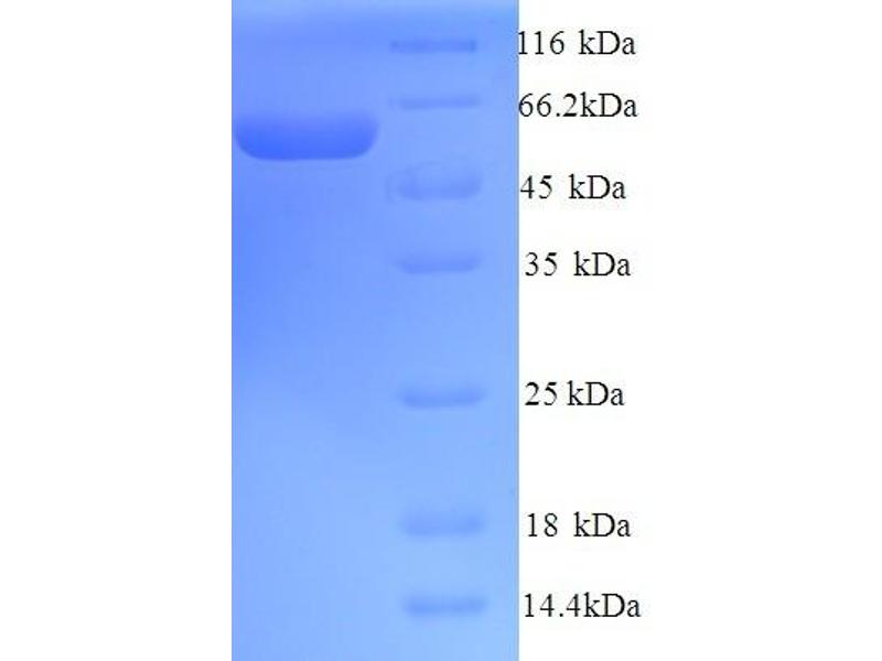 The purity of the protein is greater than 85 % as determined by SDS-PAGE and Coomassie blue staining.