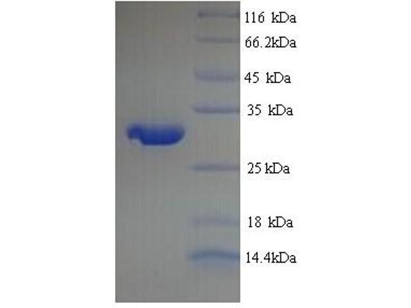 The purity of the protein is greater than 95 % as determined by SDS-PAGE and Coomassie blue staining.