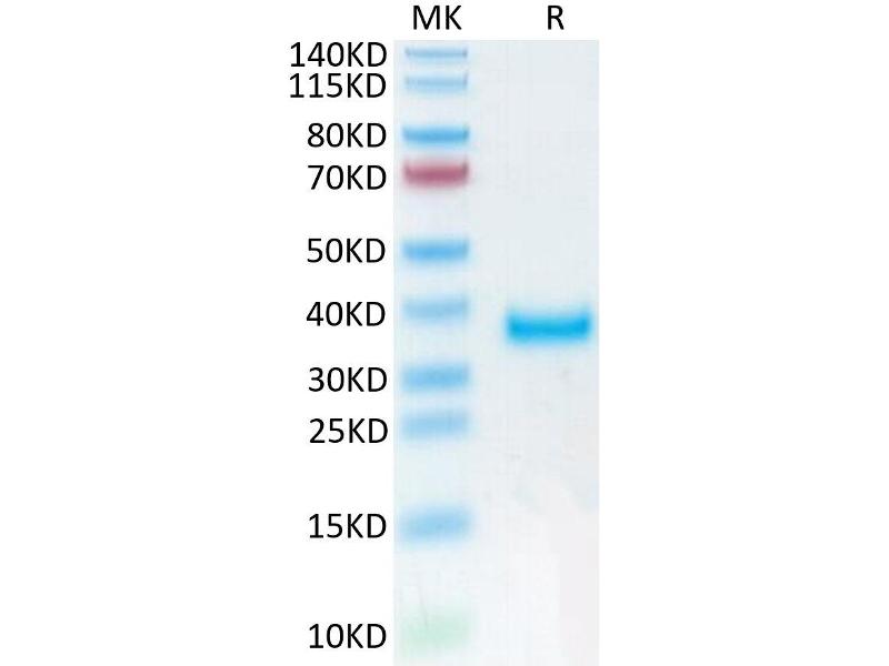 The purity of the protein is greater than 95 % as determined by SDS-PAGE and Coomassie blue staining.