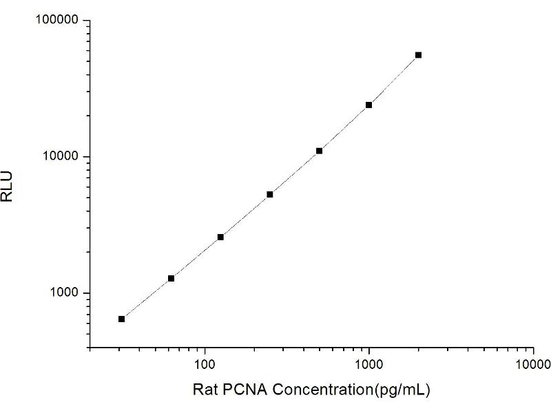 PCNA Reactivity: Rat Chemiluminescent Sandwich ELISA 31.25 pg/mL - 2000 pg/mL