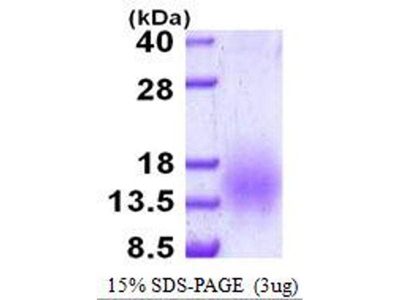 - ESAT6, the 6 kDa early secretory antigenic target of Mycobacterium tuberculosis, is a secretory protein and potent T cell antigen. ESAT6 has been shown to directly bind to the TLR2 receptor, inhibiting downstream signal transduction. Recently it was shown that ESAT6 is very potential as diagnostic for differentiation between the mycobacterial infection and BCG vaccination. Recombinant Mycobacterium tuberculosis CDC1551 ESAT6 protein, fused to His-tag at C-terminus, was expressed in Baculovirus and purified by using conventional chromatography techniques.